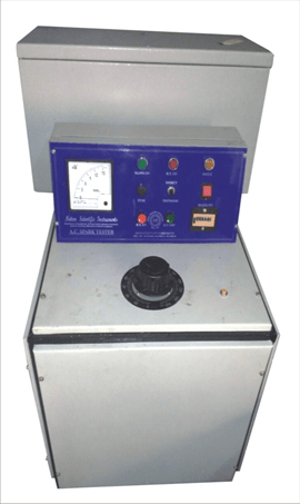 TRANSFORMER: A double wound step up transformer is the most important part of the spark tester. The transformer is so designed that the input current remains within set limit in order to protect the transformer against short circuit. The transformer is made of CRGO core, wound with very high quality super enameled copper wire and polyester film/paper is used for insulation.